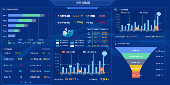 經(jīng)營大數(shù)據(jù)、銷售大數(shù)據(jù)、商品大數(shù)據(jù)、客戶大數(shù)據(jù)、營銷大數(shù)據(jù),通過可視化看板實時呈現(xiàn),經(jīng)營狀況一目了然