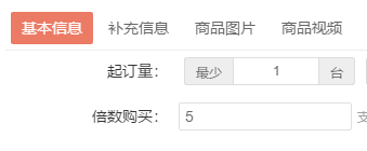 對基礎單位支持設置按數量倍數購買,比如設置為5以后,客戶購買該款商品加入購物車時以5、10、15……添加。