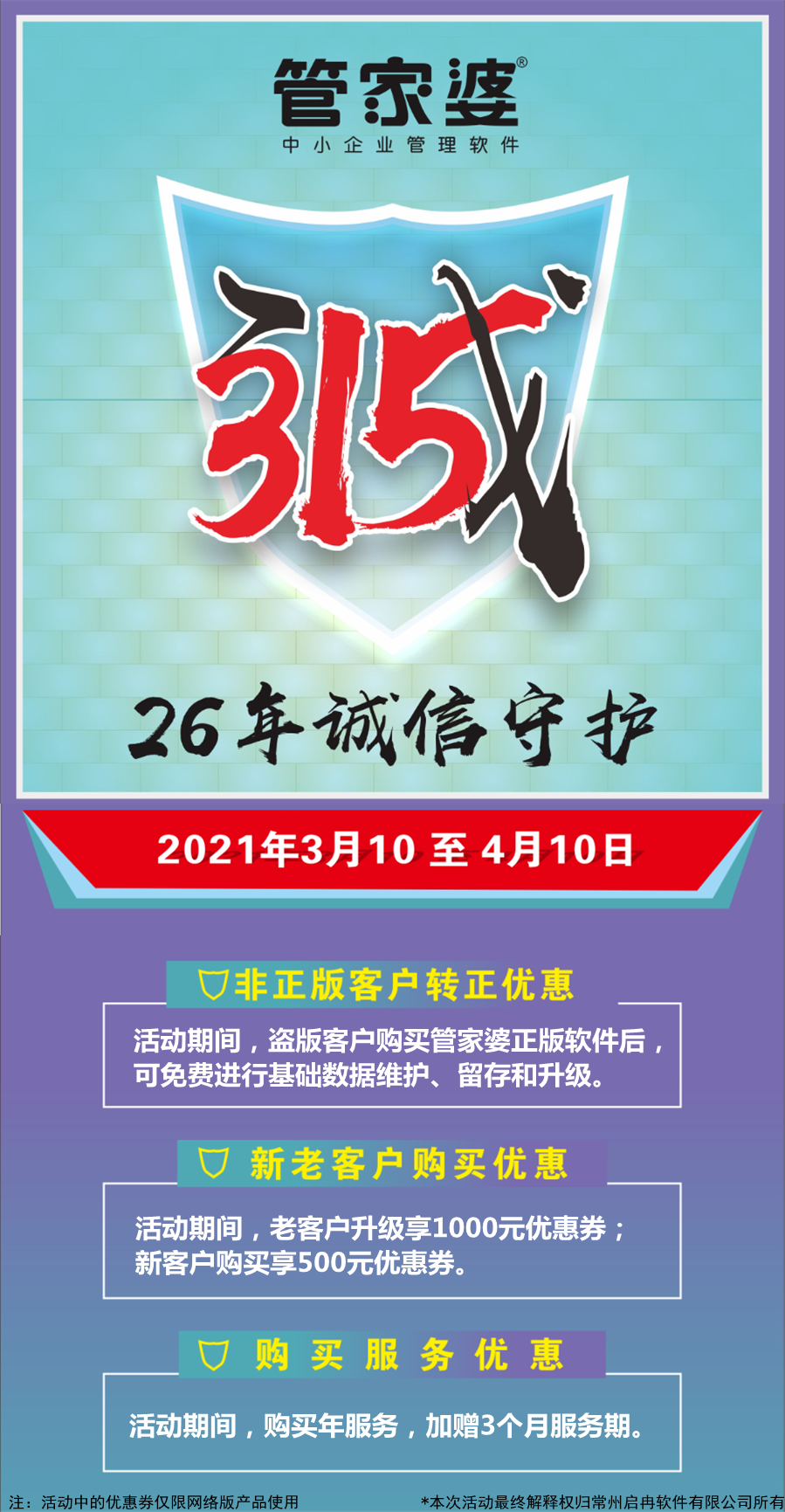 網(wǎng)站首頁 > 管家婆軟件服務(wù)中心 > 【管家婆】315,啟冉為您誠信守護