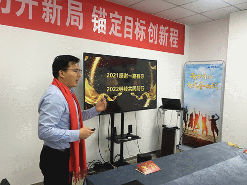 總經理毛良星首先充分肯定了公司各位同仁一直以來的辛勤工作并表示感謝。后回顧公司近三年的經營數據,強調必須深研產品、圍繞應用,為客戶提供多維度服務。讓我們做的一年比一年好,為2022年制定的目標順利實現而努力奮斗!