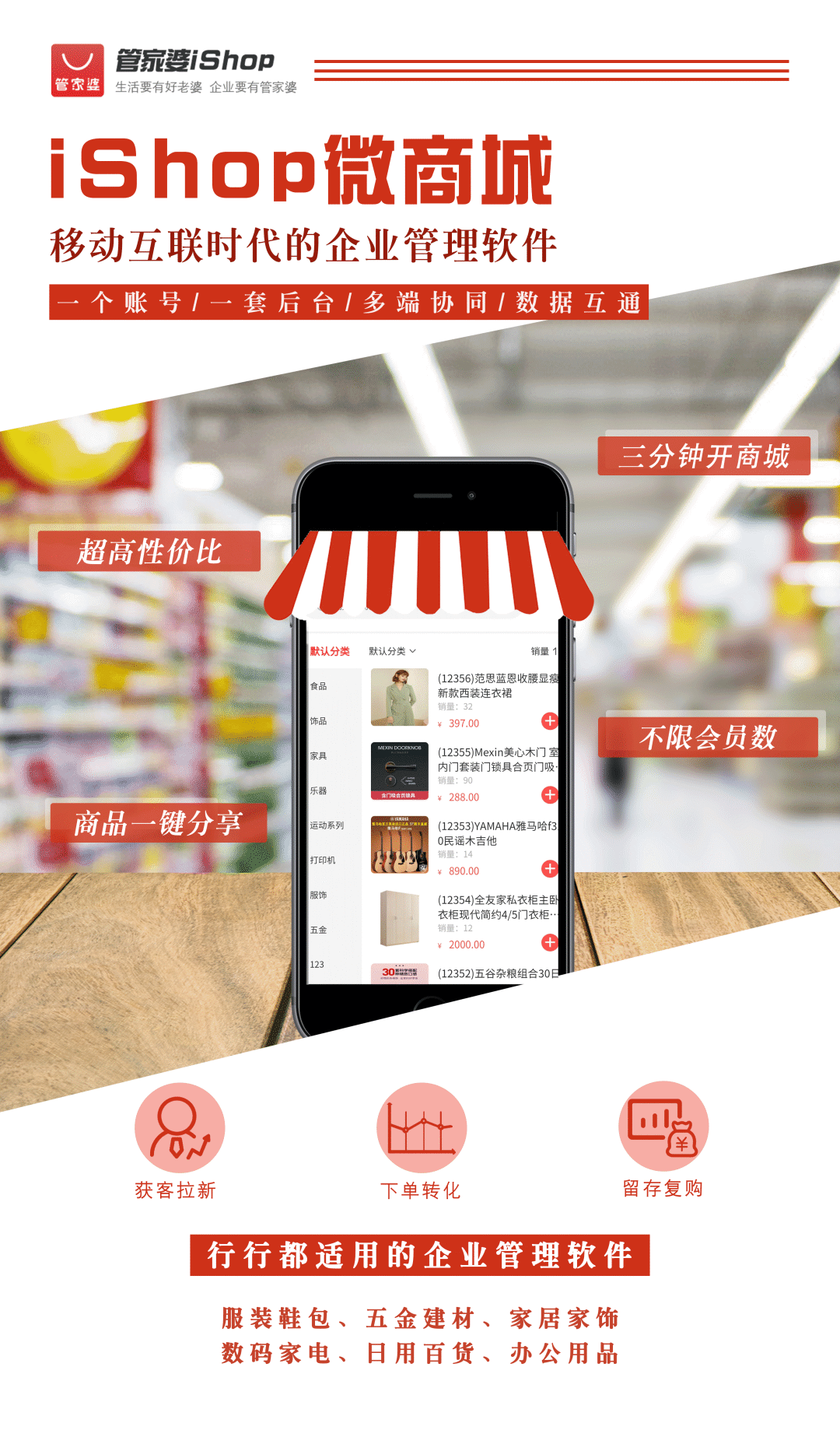 管家婆iShop作為一款移動(dòng)互聯(lián)時(shí)代的進(jìn)銷存財(cái)管理軟件,大品牌、性價(jià)比高,是批發(fā)、零售實(shí)體店的標(biāo)配,適合各行各業(yè)的商家店鋪。