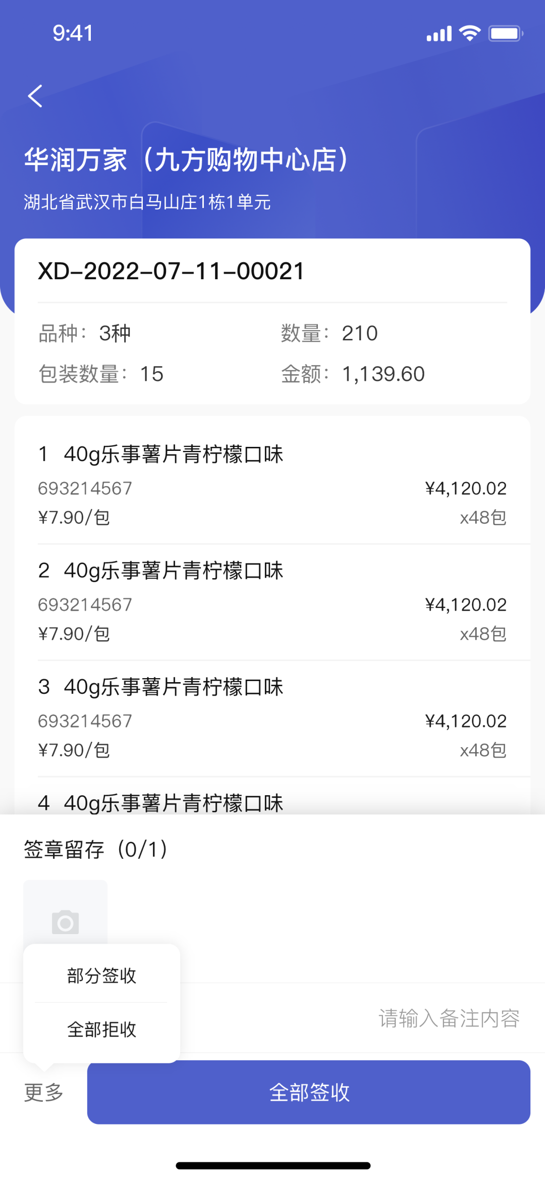 注:支持3種簽收方式:全部簽收、部分簽收、全部拒收