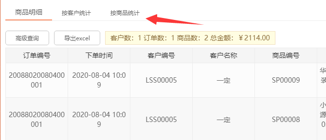可以查看詳細(xì)的商品下單信息,可按客戶或按商品進(jìn)行統(tǒng)計(jì)查看,對商pin銷shou情況更清晰