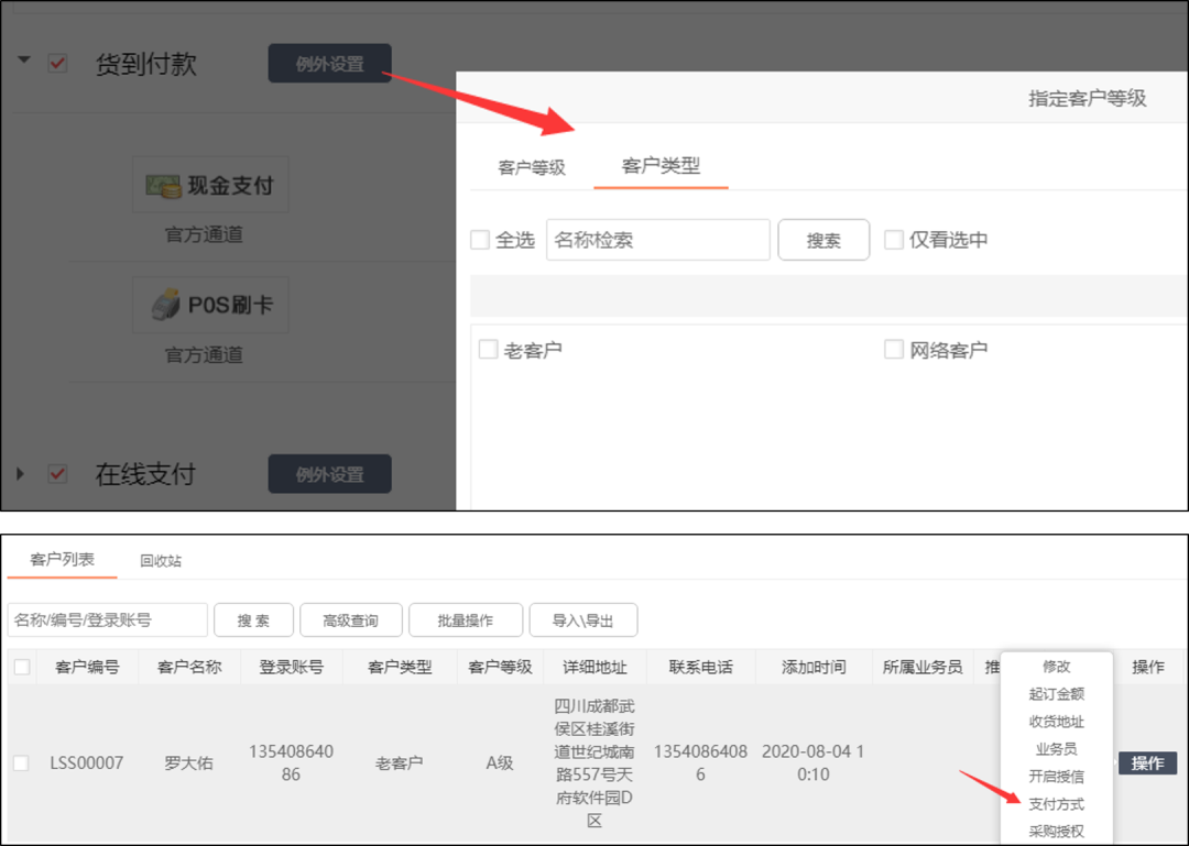 13.新增按客戶等級、類型或按單個(gè)客戶進(jìn)行支付方式例外設(shè)置