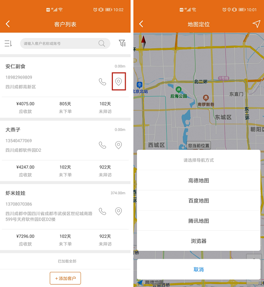 業(yè)務(wù)員拜訪出勤可直接導(dǎo)航到客戶地址,提升業(yè)務(wù)員拜訪客戶體驗(yàn)